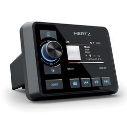 Водонепроницаемая панель соответствует стандартам Hertz Pure Marine Certified Product, что означает сочетание пыле- и влаго- защиты класса IP66, защиты от ультрафиолетового излучения категории ASTM-D4329 и защиты от воздействия соляного тумана уровня ASTM-B117 (ASTM - American Society for Testing and Materials). Устройство оснащено радиотюнером с возможностью подключения модуля DAB+, воспроизводит музыку с USB-носителей, а встроенный модуль Bluetooth с поддержкой потокового аудио позволяет сделать смартфон полноценным музыкальным источником судовой аудиосистемы. HMR 20 оснащен как встроенным усилителем 4 х 50 Вт, так и 6-канальным линейным выходом для подключения внешних усилителей мощности.