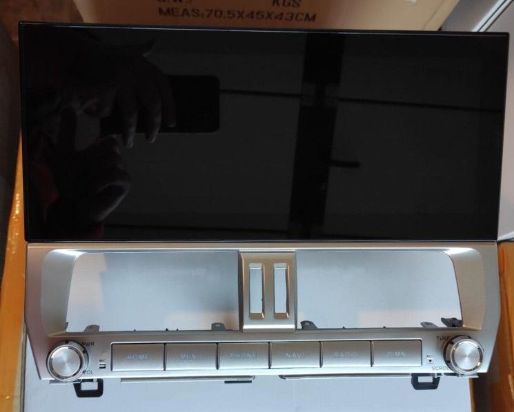 Замена заводского монитора Toyota Land Cruiser Prado 150 2017+ на 12,3-дюймовый емкостный сенсорный экран высокого разрешения (1920х720) с предустановленной ОС Android 14. Монитор устанавливается в штатное место автомобиля взамен оригинального монитора и органично вписывается в интерьер салона, при этом сохраняются все штатные функции: FM радио, работа кнопок на руле, штатная камера заднего вида, парктроник и т.д…